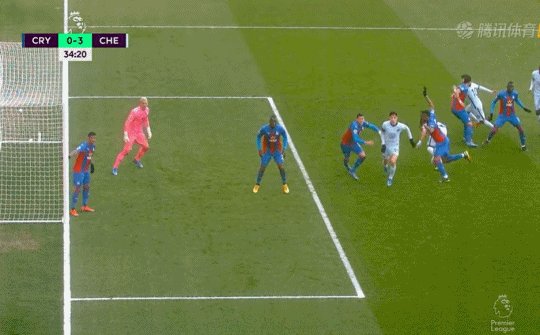 63'施卢普左路传中,本特克后点小禁区线上头球破门,水晶宫1-3切尔西!