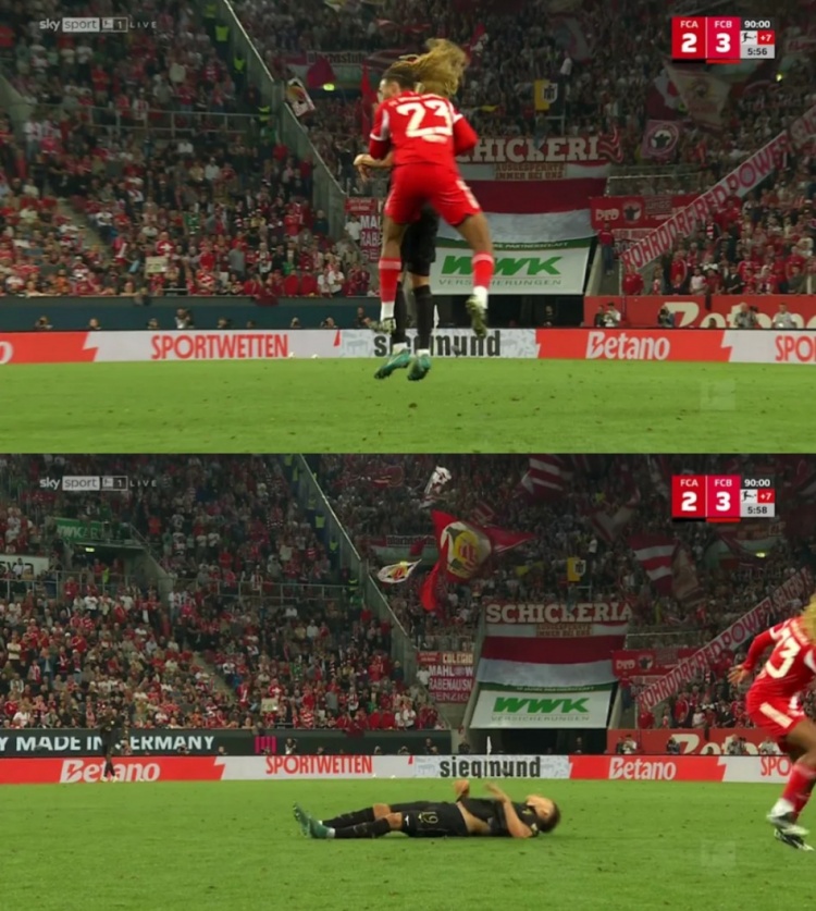 8月31日讯 在拜仁3-2战胜奥格斯堡的德甲比赛中,博伊在争顶时撞晕奥格斯堡中场费尔豪尔,对方直接被担架抬走。